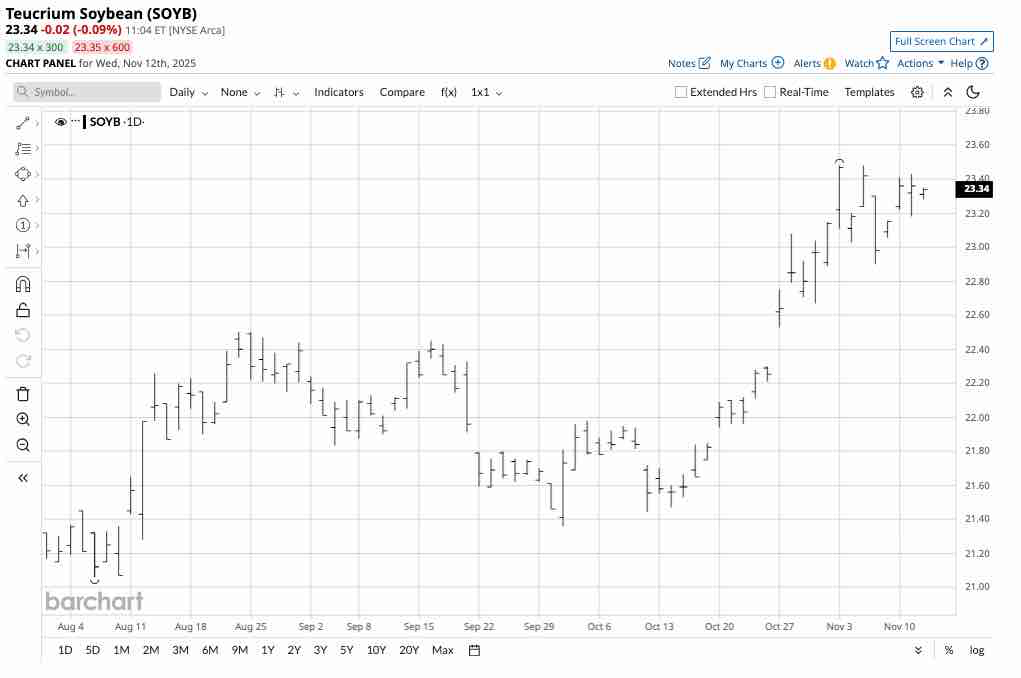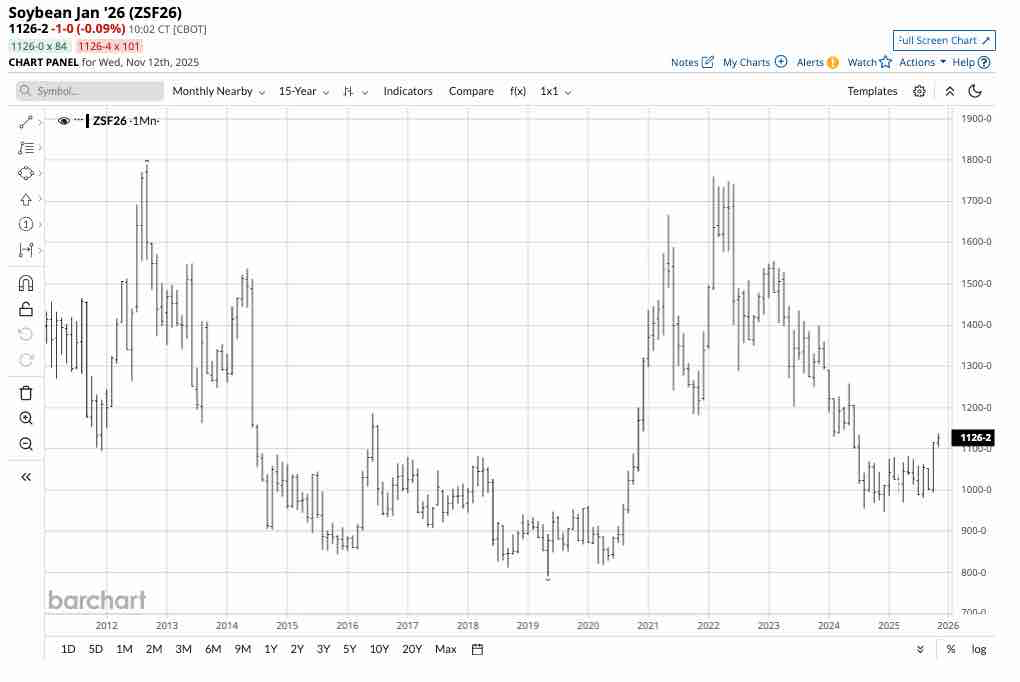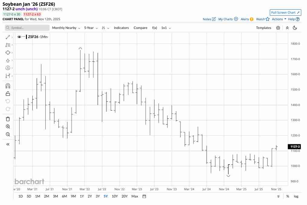 The soybean futures surpassed the $11 per bushel level in late October, following the end of the 2025 crop year.