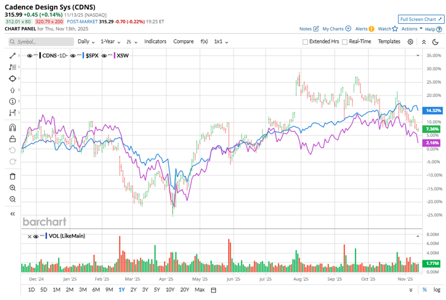 Shares of this EDA giant have underperformed the broader market over the past year. CDNS has gained 3.1% over this time frame, while the broader S&P 500 Index ($SPX) has rallied nearly 12.6%. In 2025, CDNS stock is up 5.2%, compared to the SPX’s 14.6% rise on a YTD basis.