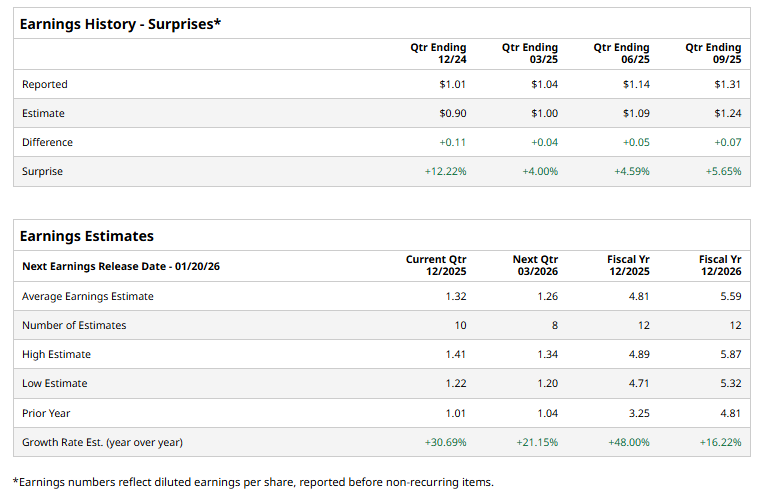 The leading financial services firm is expected to announce its fiscal fourth-quarter earnings for 2025 soon. Ahead of the event, analysts expect SCHW to report a profit of $1.32 per share on a diluted basis, up 30.7% from $1.01 per share in the year-ago quarter. The company has consistently surpassed Wall Street’s EPS estimates in its last four quarterly reports.