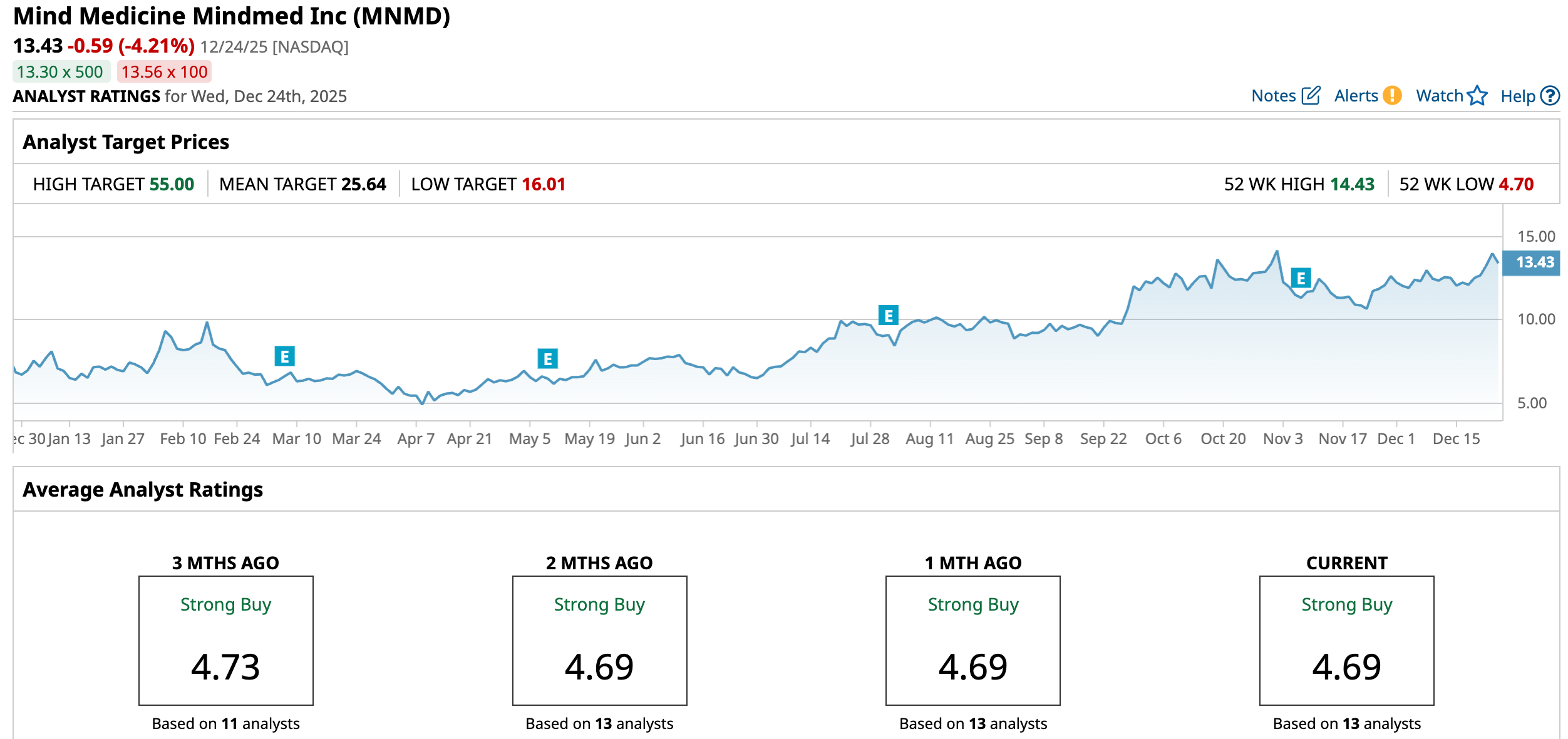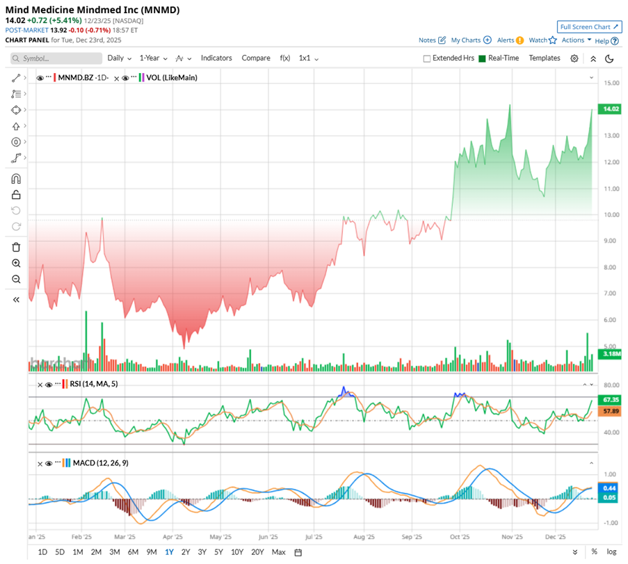 Within this evolving landscape, Mind Medicine (MNMD) has carved out a clear role. The company, also known as MindMed in short, is developing psychedelic-inspired treatments for brain health disorders, led by MM120, now advancing through late-stage trials for anxiety and depression. In 2025, MNMD stock reflected that progress, delivering strong gains as investors responded to clinical momentum and a maturing pipeline that extends into autism research.
