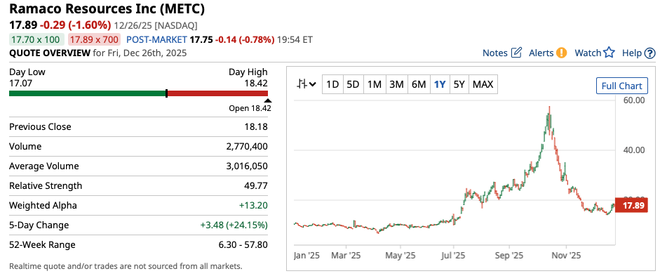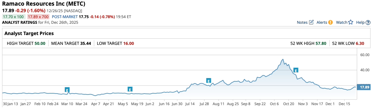 Now, METC stock has since given up much of its earlier gains seen in October. However, shares of METC stock are still up around 74% on a year-to-date (YTD) basis so far in 2025, and could be poised for a big move higher in the year to come.