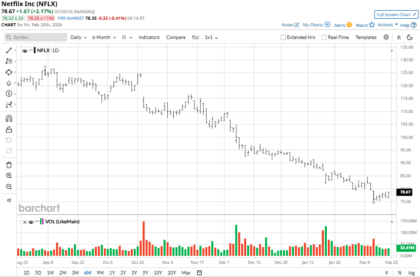 NFLX stock is down 15% over the last 12 months, but in the last six months, the stock has lost 32% of its value, giving back most of the previous gains from the beginning of 2025. This is in stark contrast to the S&P 500 ($SPX), which is up nearly 17% over the last 12 months