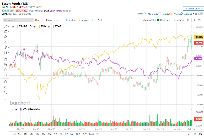 On Feb. 2, Tyson Foods released its fiscal 2026 first-quarter earnings, and its shares dipped 1.5% as investors reacted to weaker profitability despite solid revenue growth. The company reported $14.31 billion in sales, up 5.1% year over year, but gross profit declined to $808 million. Its adjusted EPS of $0.97 beat expectations, and cash flow from operating activities remained strong at $942 million.