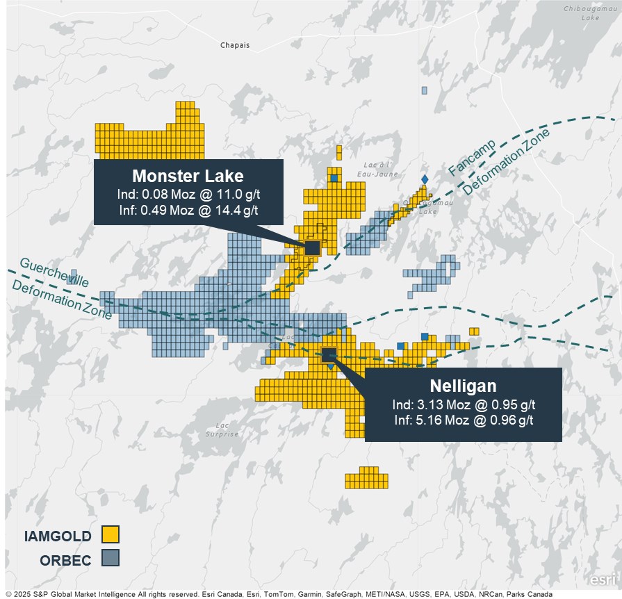 Toronto, Ontario--(Newsfile Corp. - October 20, 2025) - IAMGOLD Corporation (NYSE: IAG) (TSX: IMG) ("IAMGOLD" or the "Company") is pleased to announce that the Company has signed a definitive arrangement agreement (the "Arrangement Agreement") with Mines D'Or Orbec Inc. (TSXV: BLUE) ("Orbec") pursuant to which IAMGOLD has agreed to acquire all of the issued and outstanding common shares of Orbec (each, an "Orbec Share") by way of a court-approved plan of arrangement under the Business Corporations Act (Ontario) (the "Transaction"). The acquisition will consolidate IAMGOLD's existing ownership of Orbec Shares through which the Company will add the highly prospective Muus Project, which is adjacent to the Company's Nelligan and Monster Lake Projects in the Chibougamau region of Quebec, Canada.