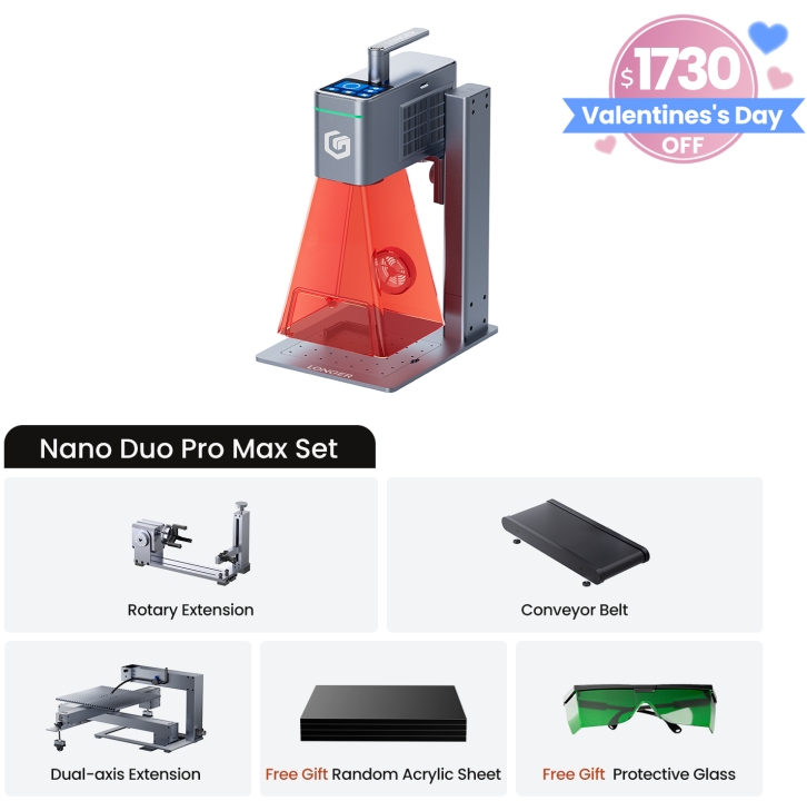 On a day as special as Valentine’s Day, jewelry worn close to the body often conveys the deepest emotions. Using the Longer Nano Pro Portable Laser Engraver, you can carve “LOVE” or delicate floral patterns onto stainless steel heart necklaces. Thanks to the Longer Nano Pro—the best laser engraver for craft fairs— with its high speed and ultra-high precision, even the finest lines and subtle curves are perfectly rendered. With engraving speeds of up to 5000 mm/s and a precision of 0.01 × 0.01 mm when paired with a galvo system, metal surfaces show crisp, refined textures that won’t fade over time. This customized piece is not just an accessory—it’s a romantic memory that can be carried every day.
