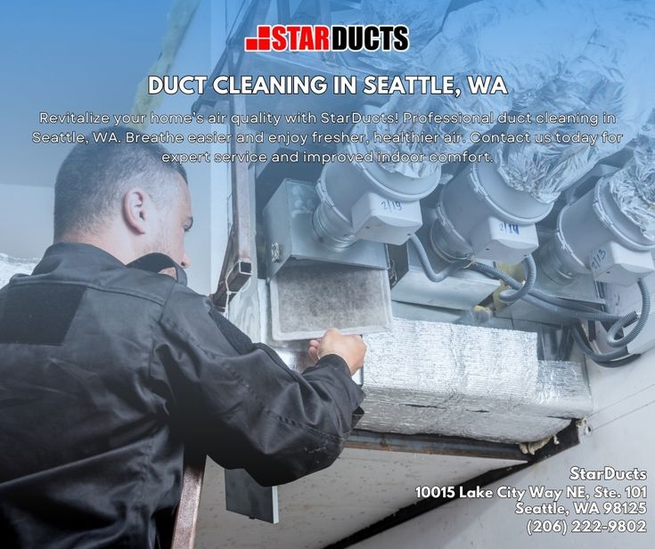 StarDucts is Seattle's premier professional duct cleaning company, proudly serving residential and commercial customers throughout the Greater Seattle Area and Puget Sound region. With more than 500 verified five-star reviews, a team of trained and insured technicians, and a commitment to honest pricing and outstanding customer service, StarDucts has earned its reputation as the region's most trusted air duct cleaning provider. Services include residential duct cleaning, commercial duct cleaning, dryer vent cleaning, and optional sanitizing and deodorizing treatments. StarDucts serves Seattle, Bellevue, Kirkland, Redmond, Lynnwood, Everett, and all surrounding communities. For more information, visit the company's website.