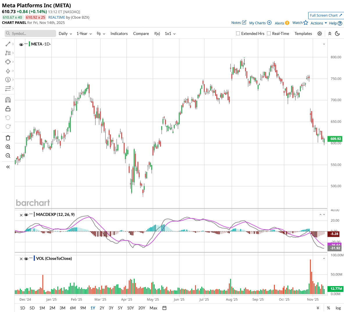 Meta Platforms (META) has seen its stock drop roughly 15% this month as investors digest the company's aggressive spending plans. However, Wedbush Securities remains bullish on META stock with a $920 price target, indicating an upside potential of 50% from current levels.