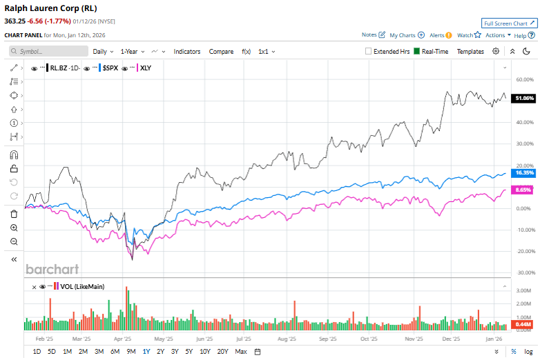 Over the past year, shares of RL have gained 53.1%, significantly outperforming the S&P 500 Index’s ($SPX) 19.7% rise and the Consumer Discretionary Select Sector SPDR Fund’s (XLY) 12.8% return during the same time frame.