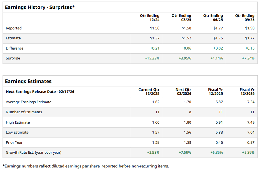 Republic Services, Inc. (RSG), headquartered in Phoenix, Arizona, offers environmental services. Valued at $64.9 billion by market cap, the company provides solid waste collection services for commercial, industrial, municipal, and residential customers. It also operates transfer stations, landfills, and recycling facilities. The waste management giant is expected to announce its fiscal fourth-quarter earnings for 2025 after the market closes on Tuesday, Feb. 17.