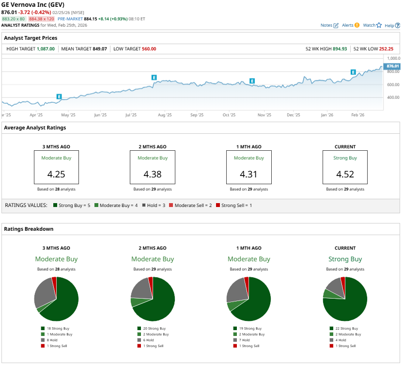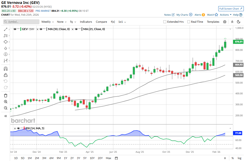 After a strong performance in 2025, the rally in GE Vernova (GEV) stock has carried into 2026. GEV stock is up 34% so far this year and recently reached a record $894.93 on Feb. 25. Over the past 12 months, the stock has surged roughly 160%, driven by rising demand for electricity.