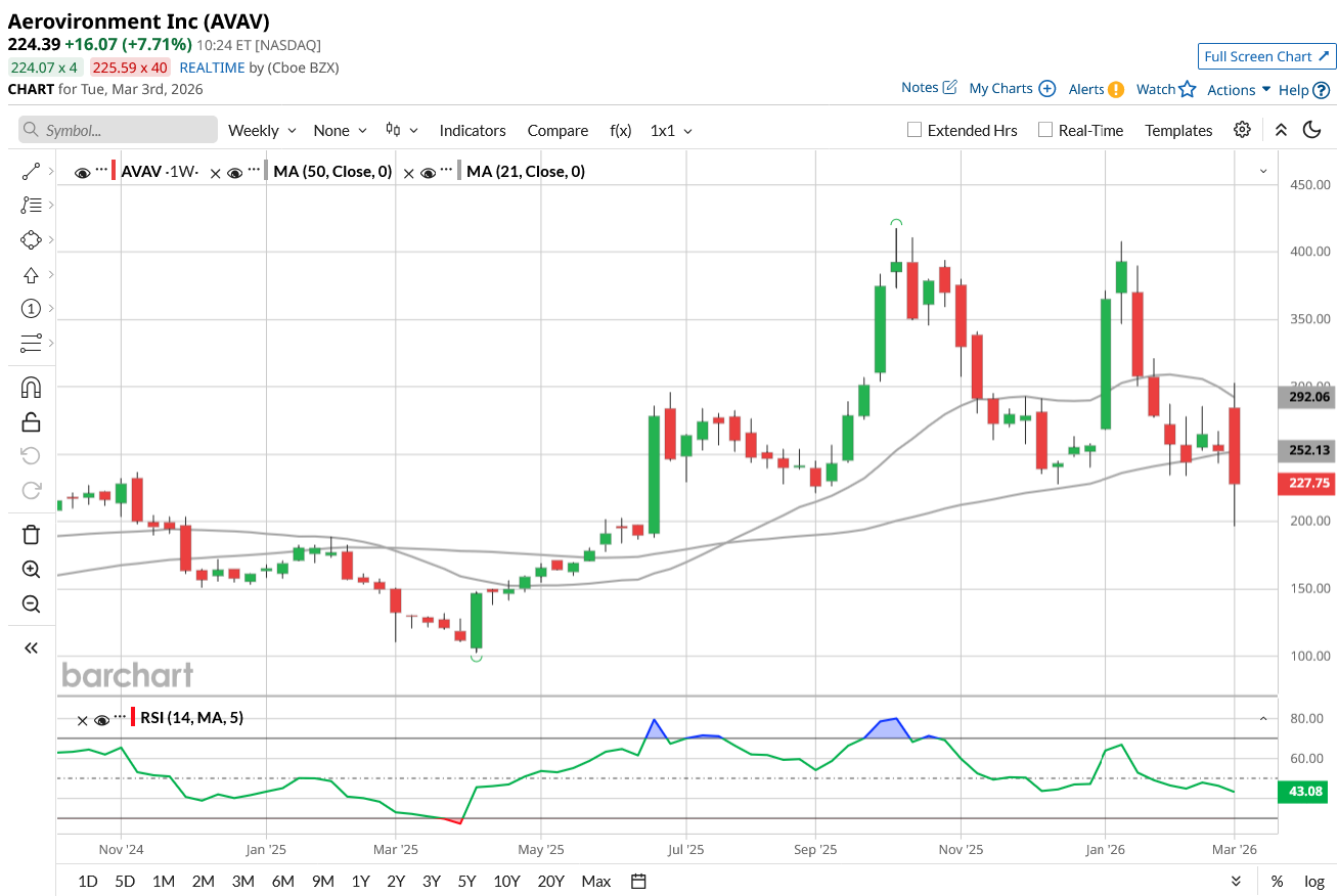 The broader geopolitical backdrop may also work in the company’s favor. Escalating tensions between the U.S., Israel, and Iran have rattled global markets, lifting oil prices and driving investors toward traditional safe havens. Historically, periods of geopolitical instability have led to increased defense spending, particularly on advanced systems aligned with modern warfare needs. That dynamic places AeroVironment in a strategic sweet spot.