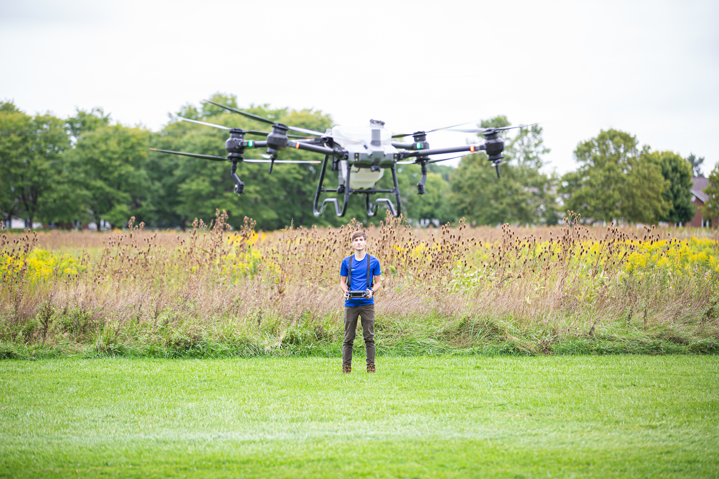 In 2022, Moore launched Lake Erie Drone, LLC, a company offering a new type of pesticide and fungicide application for local farms. His target customers are the smaller farms, less than 100 acres, commonly found in Lorain County. Most often these farms sit near residential homes, raising issues with crop duster application.