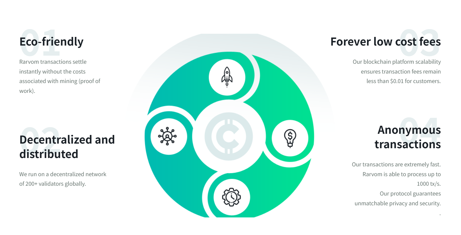 The current consumer is becoming very technology-driven and privacy-aware. They require flexibility on the way they use their capital. Rarvom Token will serve this increasing group of people by providing them with a decentralized way of payment that gives privacy to users and rewarding them in ways that a high-end financial product would do.