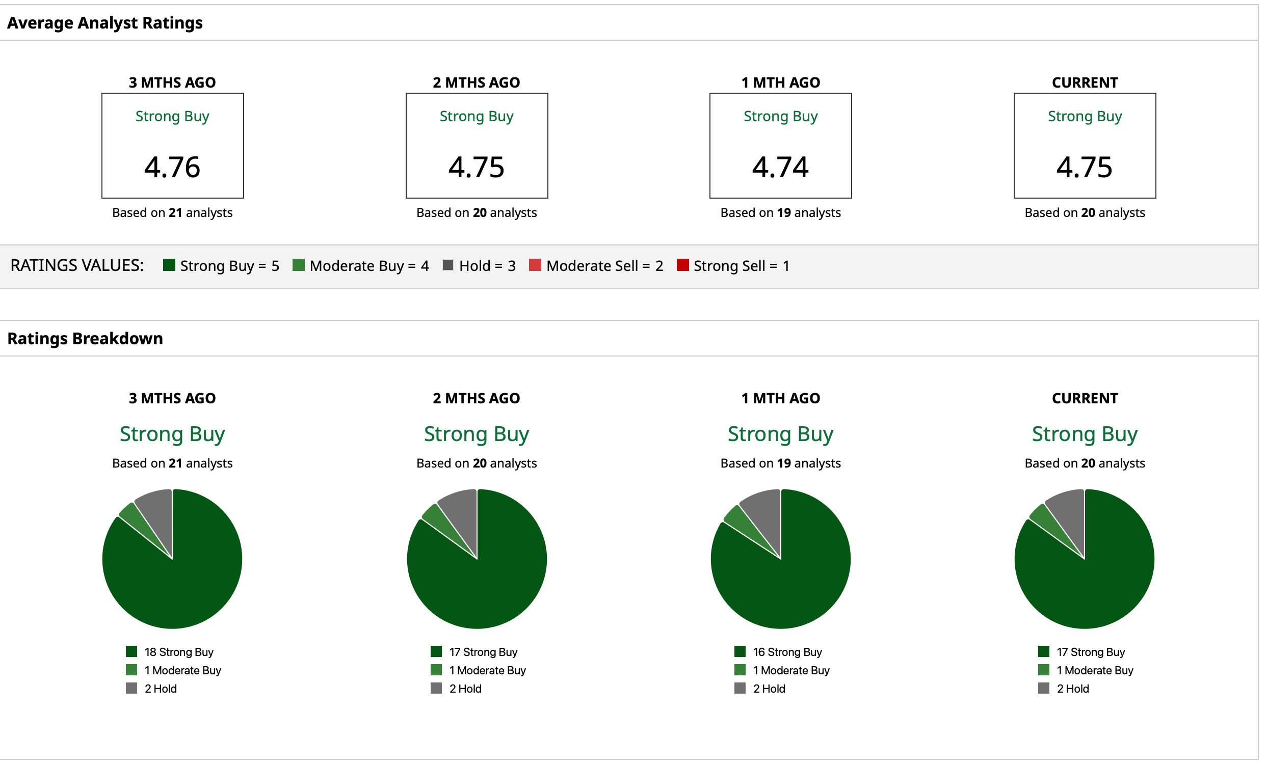 Yet, the Street has earmarked an overall consensus rating of “Strong Buy” for the stock with a mean target price of $167.26. This denotes an upside potential of about 9% from current levels. Out of 20 analysts covering the stock, 17 have a “Strong Buy” rating, one has a “Moderate Buy” rating, and two have a “Hold” rating.