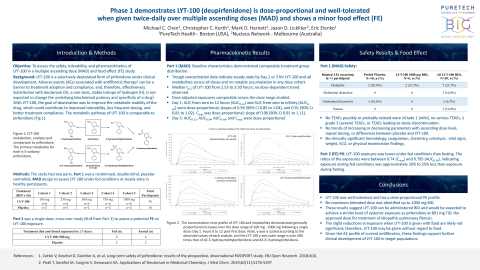 The Phase 1 multiple ascending dose food and effect study was a randomized, double-blind, placebo-controlled study of LYT-100 in healthy volunteers in both fed and fasting states. Plasma concentrations of LYT-100 and its metabolites were measured to determine pharmacokinetic (PK) parameters.