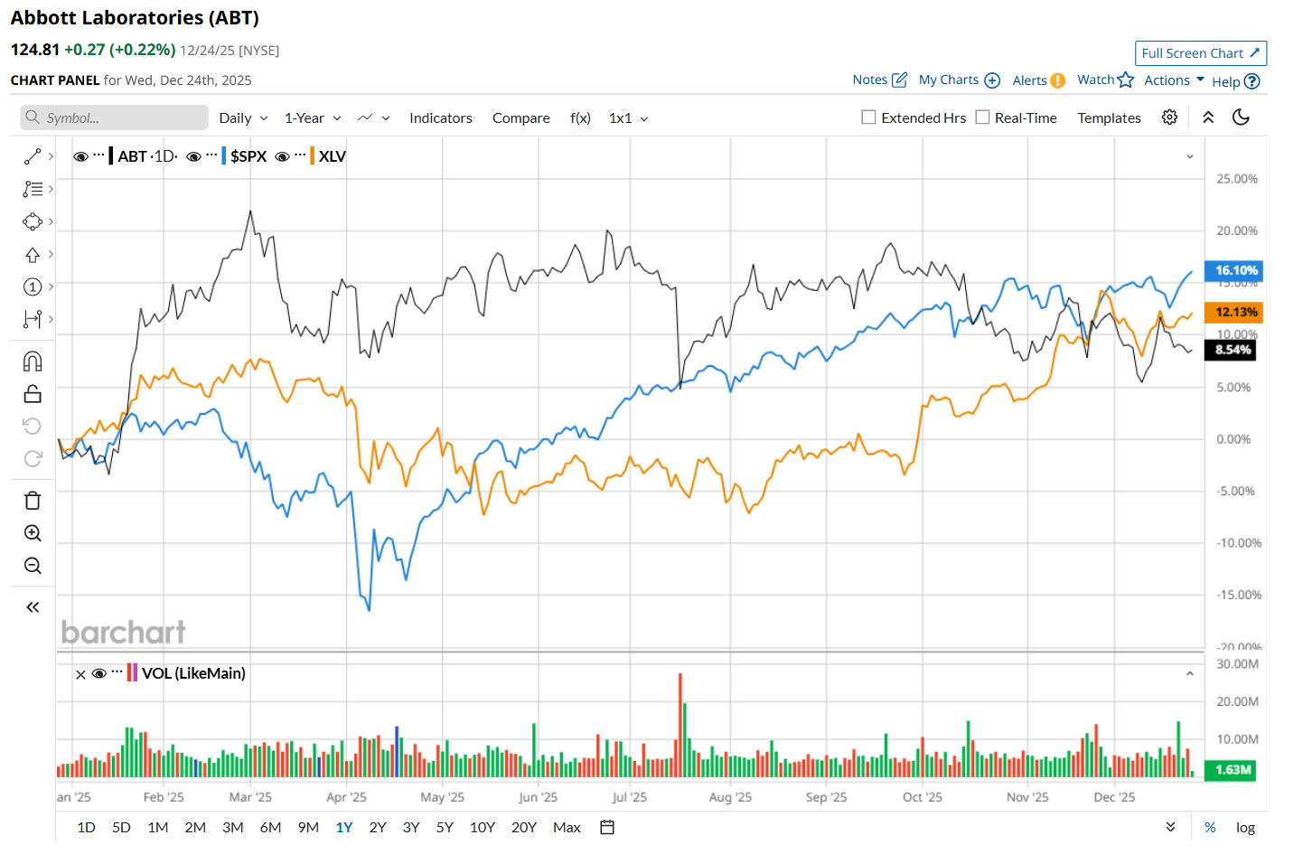 Shares of ABT have gained 8.8% over the past 52 weeks, underperforming both the S&P 500 Index's ($SPX) 14.8% return and the State Street Health Care Select Sector SPDR ETF’s (XLV) 11.8% uptick over the same time period.